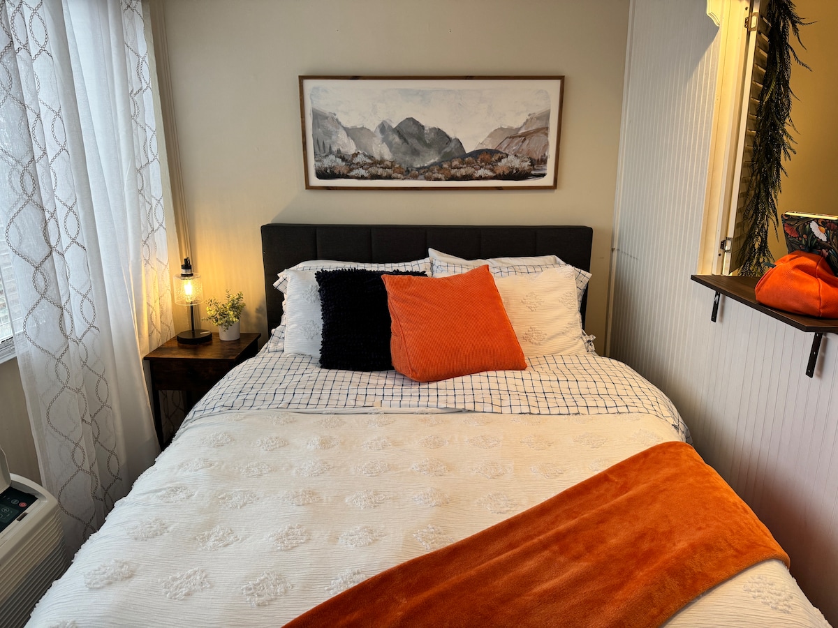 Studio yang baru direnovasi di pusat kota Knoxville, berlokasi sempurna dalam jarak berjalan kaki dari tempat wisata terbaik, restoran lokal, toko, dan Stadion UT. Studio bergaya ini nyaman untuk 4 orang dan memiliki tempat tidur yang nyaman, suasana hangat, dan tata letak yang nyaman yang ideal untuk pasangan petualang, pelawat bisnis, dan keluarga. Hubungi kami jika ada pertanyaan—tuan rumah Anda responsif, ramah, dan bersemangat menyambut Anda di masa inap Anda di Knoxville.
