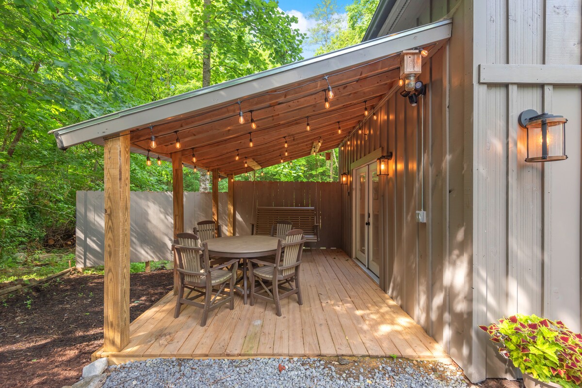 Penyewa bulanan diterima — Kabin modern yang indah, untuk 2-4 orang, bak mandi air panas, perapian. Properti ini memiliki akses ke lapangan golf, clubhouse, kolam renang luar ruangan yang menghadap ke Smoky Mtns, Fitness Center. 1 tempat tidur King 1 Queen, dengan sofa tarik untuk tidur total 6. Hutan pribadi di belakang properti. Meja hoki udara di lantai bawah. Disaring di teras. Lubang api luar ruangan. TV & internet Kecepatan Tinggi disediakan tanpa biaya. Nyaman ke Great Smoky Mountains, Cades Cove, Dollywood, & Gatlinburg.