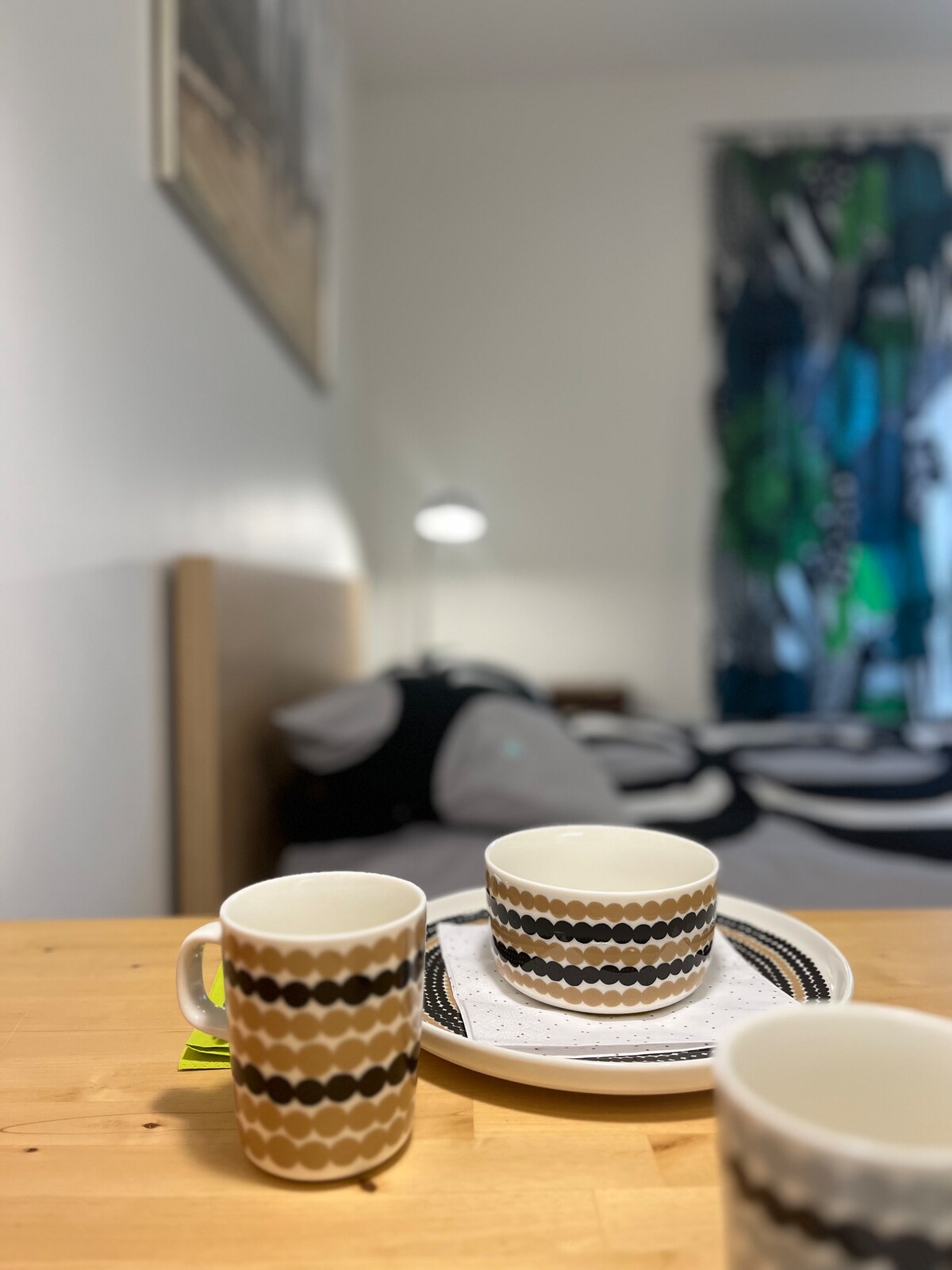 Apartemen kecil yang cerah, damai, modern, dan bergaya di distrik Leenala. Apartemen ini memiliki tempat tidur double selebar 140 cm dan tempat tidur siang selebar 80 cm, yang bisa diubah menjadi 1-2 tempat tidur ekstra. Di musim panas, Anda bisa mendinginkan apartemen dengan pendinginnya sendiri. Kolam renang dalam ruangan, arena es, arena hibrid, taman acara hampir di sebelah (0,6 km). Meripuisto, area olahraga luar ruangan Santahaa, rumah sakit pusat, teater, pusat musik Snellman, stasiun kereta api sekitar 15 menit berjalan kaki (1,2-1,5km).