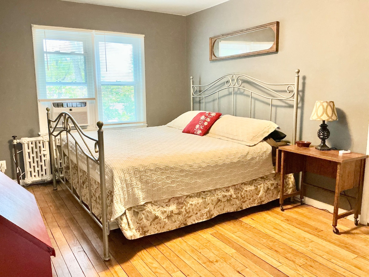 Kami menantikan kedatangan Anda di suite pribadi yang merupakan kamar tamu di rumah kami. Anda akan memiliki pintu masuk pribadi & 3 kamar untuk Anda sendiri. Ada ruang tamu dengan meja dan kursi, kamar tidur dengan tempat tidur queen size - nakas, meja rias dan ruang lemari dengan gantungan baju untuk Anda gunakan - dan kamar mandi lengkap yang baru direnovasi. Ada juga dapur kecil di lorong yang merupakan Kabinet Hoosier antik yang dilengkapi dengan microwave, kulkas mini, teko kopi, dan panci air panas.