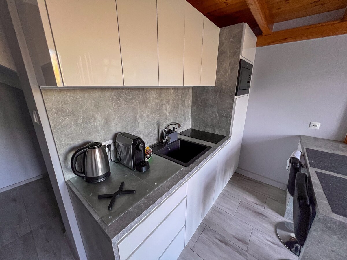 Selamat datang di Apartemen milik pribadi seluas 40m² ini ,350m jauhnya dari pantai, dekat dengan kafe,bar,restoran ,900m ke pusat kota, juga menawarkan Anda: - AC yang kuat - parkir khusus #14 di garasi! - Wi - Fi cepat - lift cepat,dari garasi - 6. lantai,atas gedung - 55" HD PayTV,gratis - Dapur lengkap dengan kulkas BOSCH,induksi, oven, mesin cuci piring,microwave,panci,wajan - Mesin kopi JURA - balkon yang bagus,dua tempat tidur berjemur - tempat tidur boxspring dunvik besar yang nyaman (1,80x2,00m) - tempat tidur bayi