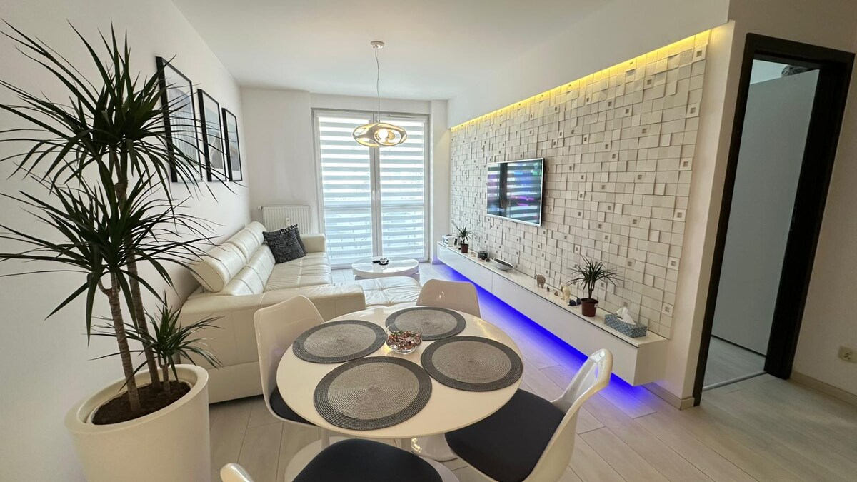 Apartemen yang modern, luas, dan nyaman di kompleks 'Platany' yang terletak di Pulau Solna di pusat Kolobrzeg. Apartemen dengan balkon dan pemandangan Kanal Drzewny yang indah ini terletak di lantai 5 gedung yang dilengkapi dengan lift. Cocok untuk hingga 4 orang, ini adalah pilihan sempurna untuk liburan bersama teman atau keluarga serta bekerja jarak jauh. Untuk orang tua yang bepergian dengan anak - anak kecil, tempat tidur bayi dan kursi makan bayi juga tersedia (atas permintaan).