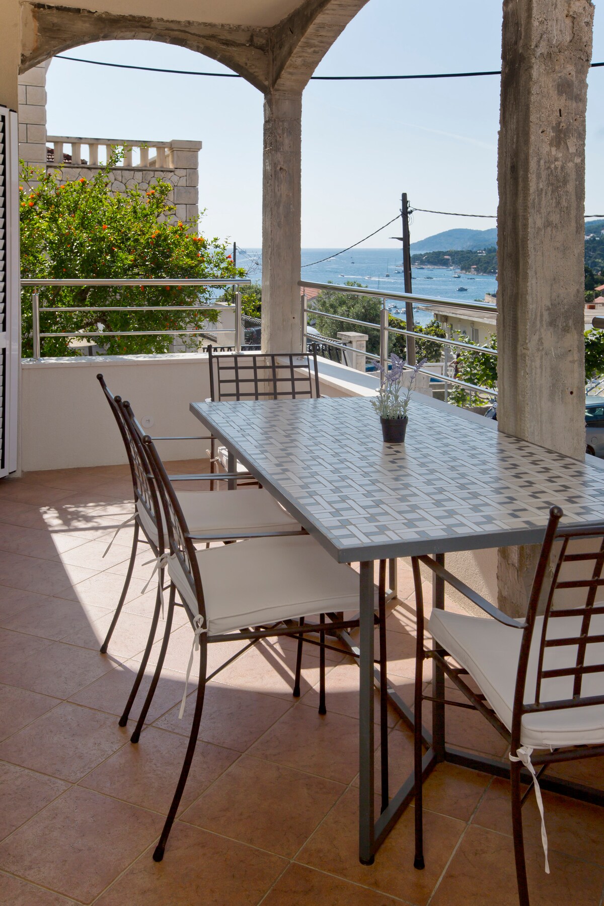 Apartemen untuk 4 orang yang berada di tengah kota Vis. Apartemen ini memiliki teras besar dengan pemandangan laut TERBAIK dari teluk Vis. Apartemennya besar, luas dan nyaman. Kami juga membantu tamu kami menyelenggarakan tur gua Biru dan penyewaan sepeda.