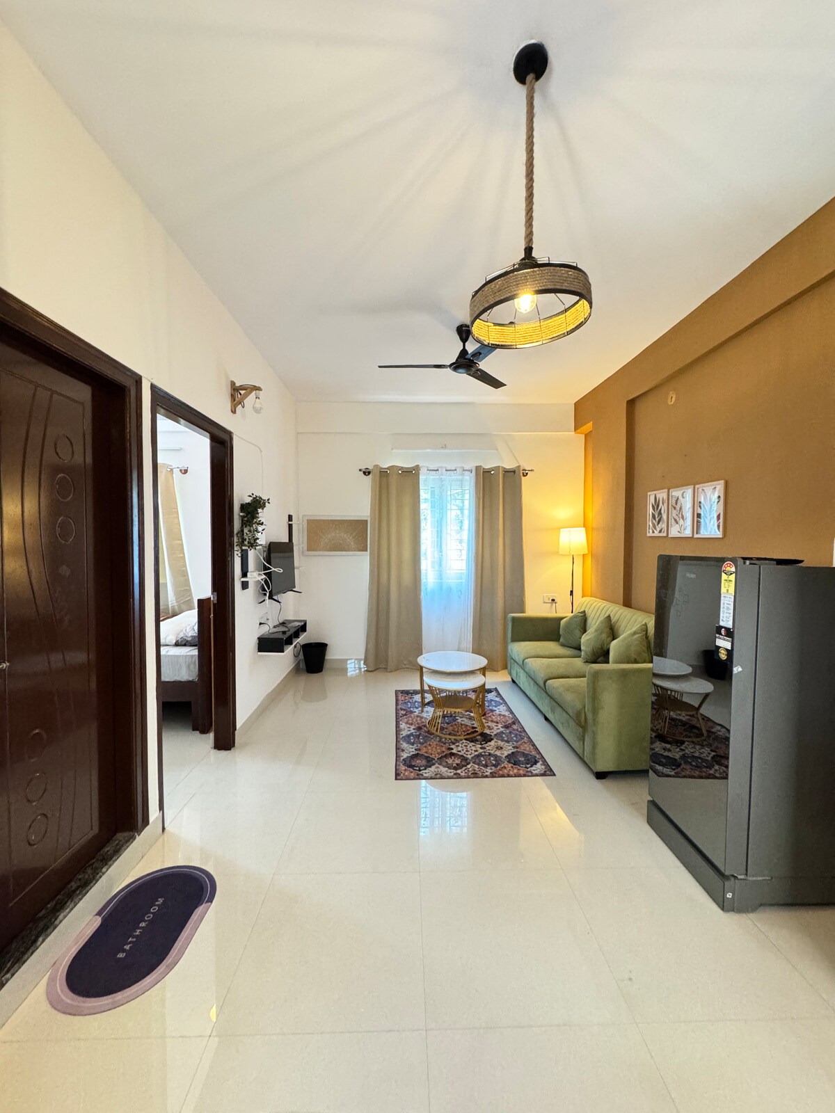 Selamat datang di apartemen 1 - BHK premium kami yang baru, ideal untuk pasangan dan wisatawan yang mencari kenyamanan dan privasi di lokasi pusat yang sangat baik. Kamar tidur ini memiliki tempat tidur queen dengan kasur ortopedi lembut untuk tidur malam yang nyenyak. Bersantai di ruang duduk yang nyaman dengan Smart TV, WiFi secepat kilat, dan area dapur terbuka. Dilengkapi dengan kamar mandi super bersih yang dilengkapi dengan perlengkapan mandi. Dapur berfasilitas lengkap mencakup peralatan berkualitas tinggi dan peralatan makan untuk petualangan kuliner Anda!