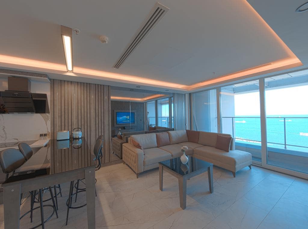 Lüks süits rezidanstır. Full deniz manzarası vardır Müşterilerimiz otel tesisleri kolayca kullanırlar. Havuz, spor salonu, sauna ek ücretlidir. Dairenin ayrı otoparkı vardır ve ücretsizdir Mekan doğrudan denize sıfır ve eşsiz güzel bir deniz manzarasına sahiptir. Bu dairede, kanepenizden ve uyku odanızdan gün batımının tadını çıkarabileceğiniz olağanüstü bir deniz manzarasına sahiptir Metro istasyonu caddenin karşısındadır ve konutun yanında bir taksi durağı bulunmaktadır.