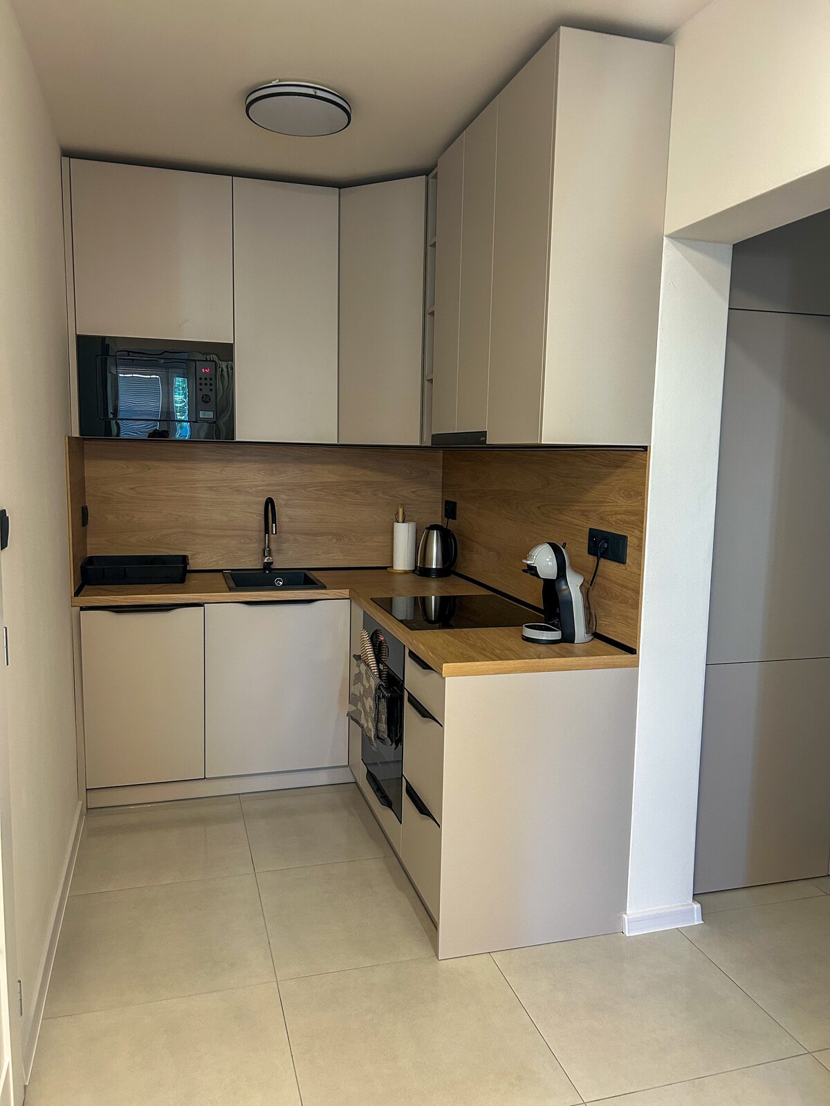 Your new stylish apartment offers comfort stay for up to 2 persons. It is located in a new estate just minutes within downtown. Place is fully furnished (kitchen appliances, wi-fi, Antik Smart TV, etc.) and is ready for your stay. Free parking is provided in designated underground space. Safety of the property and guests is provided by private security company.