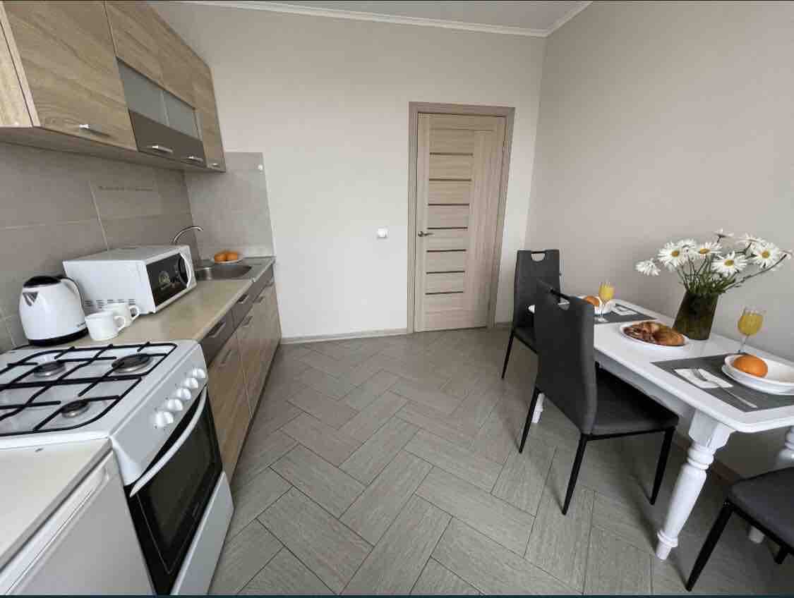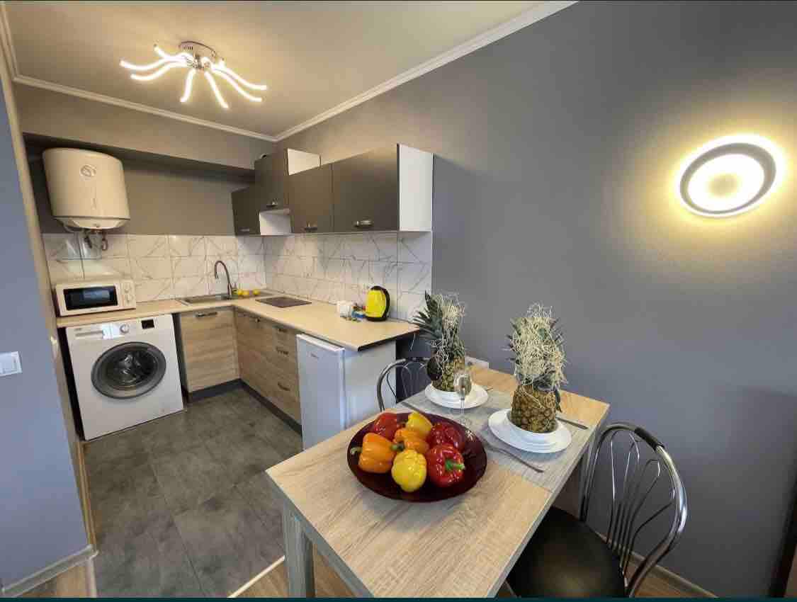 Cozy one-bedroom apartment next to the Bus Station. Spacious room with good repair and furniture (sofa, wardrobe), TV and separate Wi-Fi zone. Everything is at your service if you feel like at home. All household appliances of leading brands are available. Comfortable kitchen is fully equipped with all necessary for long stay. Constant hot water.