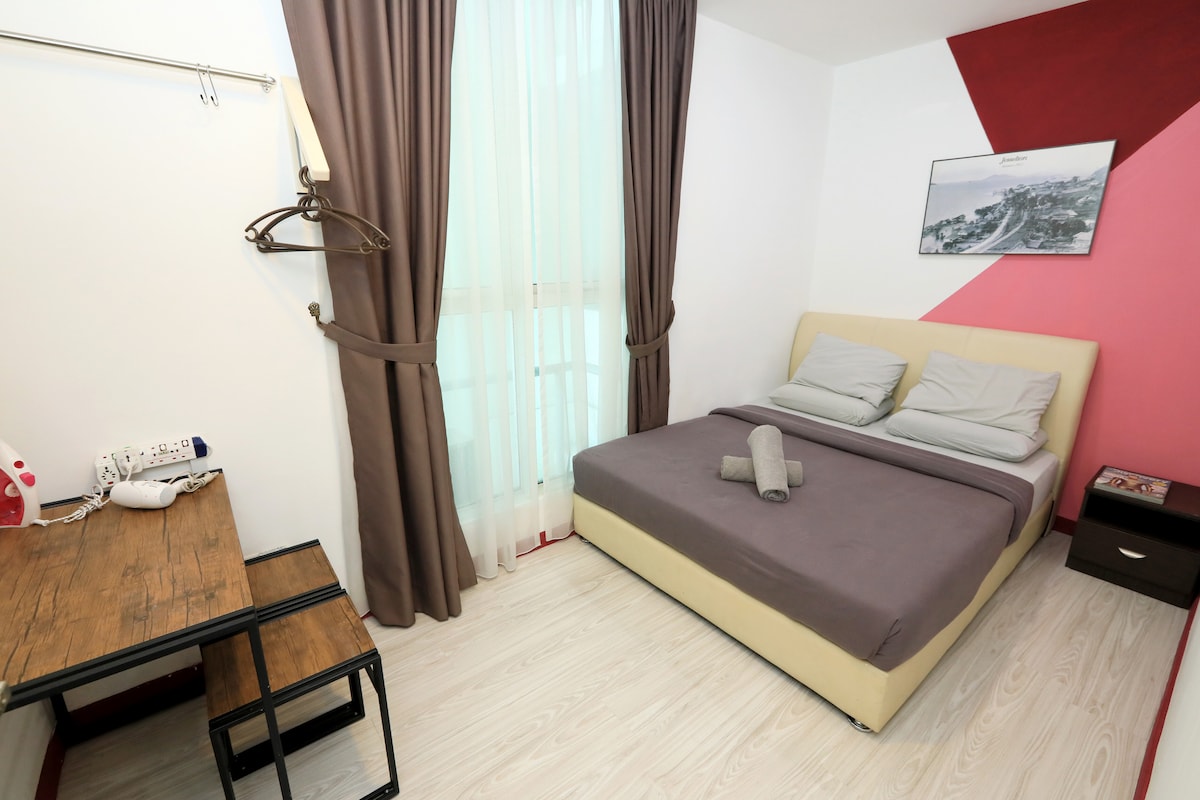💡Anda TIDAK memesan seluruh tempat. Hanya kamar tidur! 🌅 Selamat datang di kamar pribadi kami di dalam apartemen bersama di Sutera Avenue! Ini adalah penginapan ideal untuk pasangan atau wisatawan solo yang menginginkan kenyamanan, kemudahan, dan nilai. Terletak hanya 3 menit berjalan kaki dari IMAGO Mall, Anda akan menikmati akses mudah ke pusat perbelanjaan, bersantap, dan hiburan tanpa membayar harga premium. Selain itu, dari atas bangunan, Anda bisa menikmati pemandangan laut yang menakjubkan dan matahari terbenam yang menakjubkan.