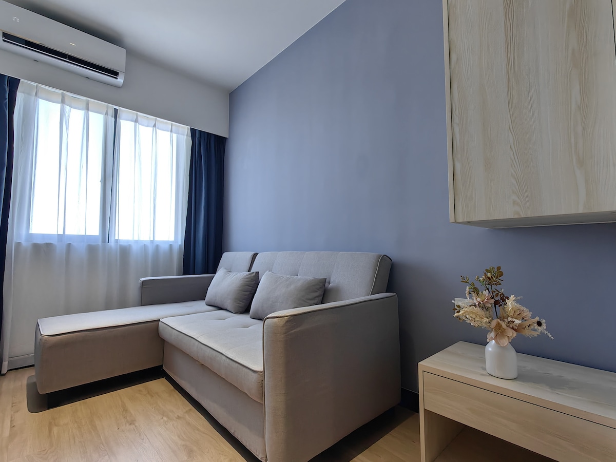 📍Centrally located to city hotspots 🛋️ High ceiling, stylish decor & spacious living room 📺 Smart TV & High Speed Wifi 🛟 Private balcony overlooking serene pool 🍳 Well-equipped kitchen 👮♀️ 24-Hour Security ✈️ As we are near the airport, like the rest of the town, you may hear occasional aircraft noise. This is a common experience in the area, but rest assured, the comfort of your stay is our top priority, with earbuds provided. ✨Book now and make yourself at home!
