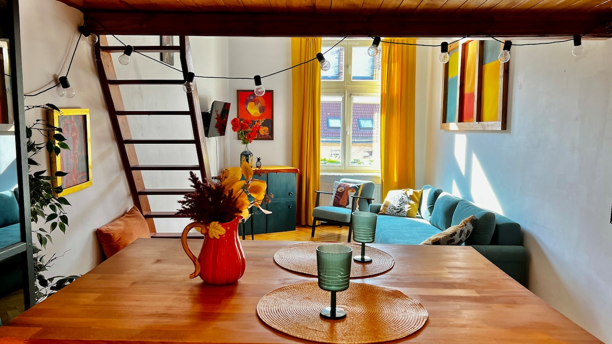 Apartemen unik milik seniman 5 menit ke The Main Square!