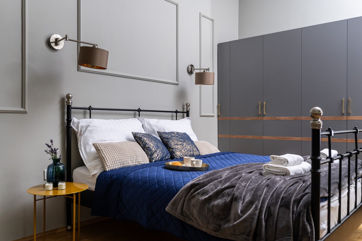 Bersantailah di sofa cabriole antik di area duduk yang diterangi cahaya yang dihiasi permadani kulit domba dan perabot vintage. Aksen daur ulang dan sentuhan minimalis di seluruh area memberikan suasana eklektik pada ruang yang direnovasi ini. Apartemen ini berlokasi di rumah petak abad kesembilan belas, di Distrik Kota Tua antara Alun - Alun Utama dan area Jewish Quarter lama. Berjalanlah menyusuri jalan - jalan yang tampak istimewa yang dipenuhi toko - toko antik yang unik, galeri seni yang menarik, dan kafe - kafe lusuh yang chic.