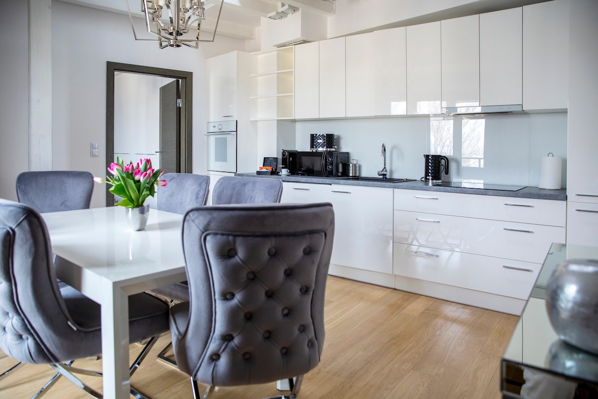 Apartemen unik dengan jacuzzi, sauna, dan taman pribadi – tempat yang sempurna untuk bersantai! Sorotan utama termasuk jacuzzi pribadi, sauna, dan taman yang nyaman – cocok untuk minum kopi pagi atau bersantai di malam yang damai. Tamu juga memiliki akses ke parkir bawah tanah gratis. Pilihan ideal untuk akhir pekan yang romantis atau liburan mewah yang dekat dengan alam.