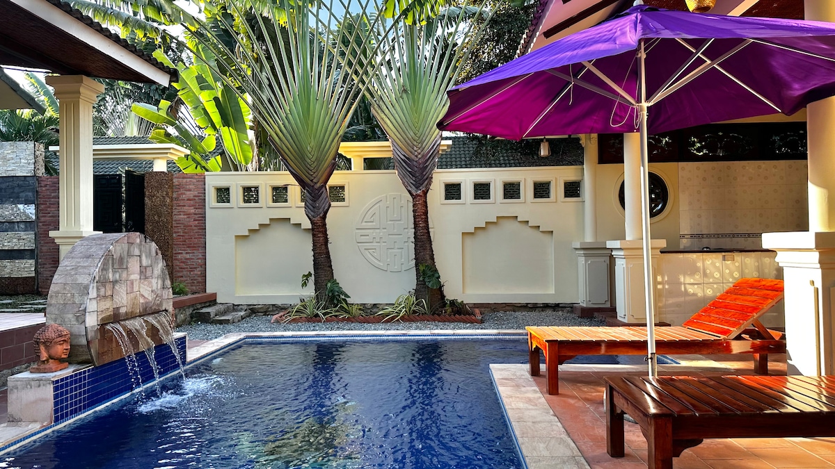 Kami menawarkan vila 3 kamar tidur dengan ruang tamu terpisah, meja makan, dan dapur besar. Tamu kami akan menikmati akses gratis ke kolam renang besar 110 meter persegi, air dangkal untuk anak-anak, dan air dalam untuk orang dewasa untuk menyelam. Ada penggunaan taman bermain, meja bbq luar ruangan, dan fasilitas gratis. Ada tempat parkir gratis yang besar dan aman di tempat ini. Tempat kami dikelilingi pohon besar, taman, pohon buah - buahan, dan berbagai jenis burung. Kami juga menyajikan makanan dan minuman mulai pukul 07.00 hingga 21.00.