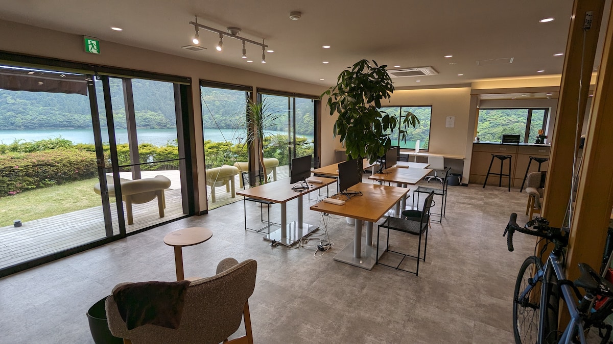 [Base camp di taman nasional / HUB Unzen] Tempat ini dioperasikan oleh "HUB Unzen". Tempat menginap untuk orang dewasa, berdasarkan konsep "menjauh dari kehidupan sehari-hari dan membenamkan diri dalam alam". ▼ Kamar: "Suite Kamar Jepang-Barat" Premium Kamar sudut dengan lampu di 2 sisi.Anda akan memiliki balkon pribadi dengan pemandangan panorama danau dan pegunungan. Dua tempat tidur dengan kasur yang dipilih dengan cermat dan ruang 8 tatami-mat untuk kenyamanan dan relaksasi. Aman dan terjamin dengan kamar mandi pribadi, toilet, dan kamar kecil. ▼ Untuk workation dan masa inap jangka panjang Tersedia WiFi berkecepatan tinggi.Anda dipersilakan untuk menggunakan meja dalam ruangan dan ruang kerja bersama dengan pemandangan (bersama). Unzen Onsen berjarak 3 menit berjalan kaki.Toko dan restoran juga bisa ditempuh dengan berjalan kaki. ▼Fasilitas Dalam ruangan: AC, kulkas, ketel, pemurni udara, pengering rambut Fasilitas: handuk, sikat gigi, dll. Dibagikan: Dapur, mesin cuci (dikenakan biaya) * Tidak ada makanan yang disediakan (Anda dapat membawa makanan Anda sendiri)