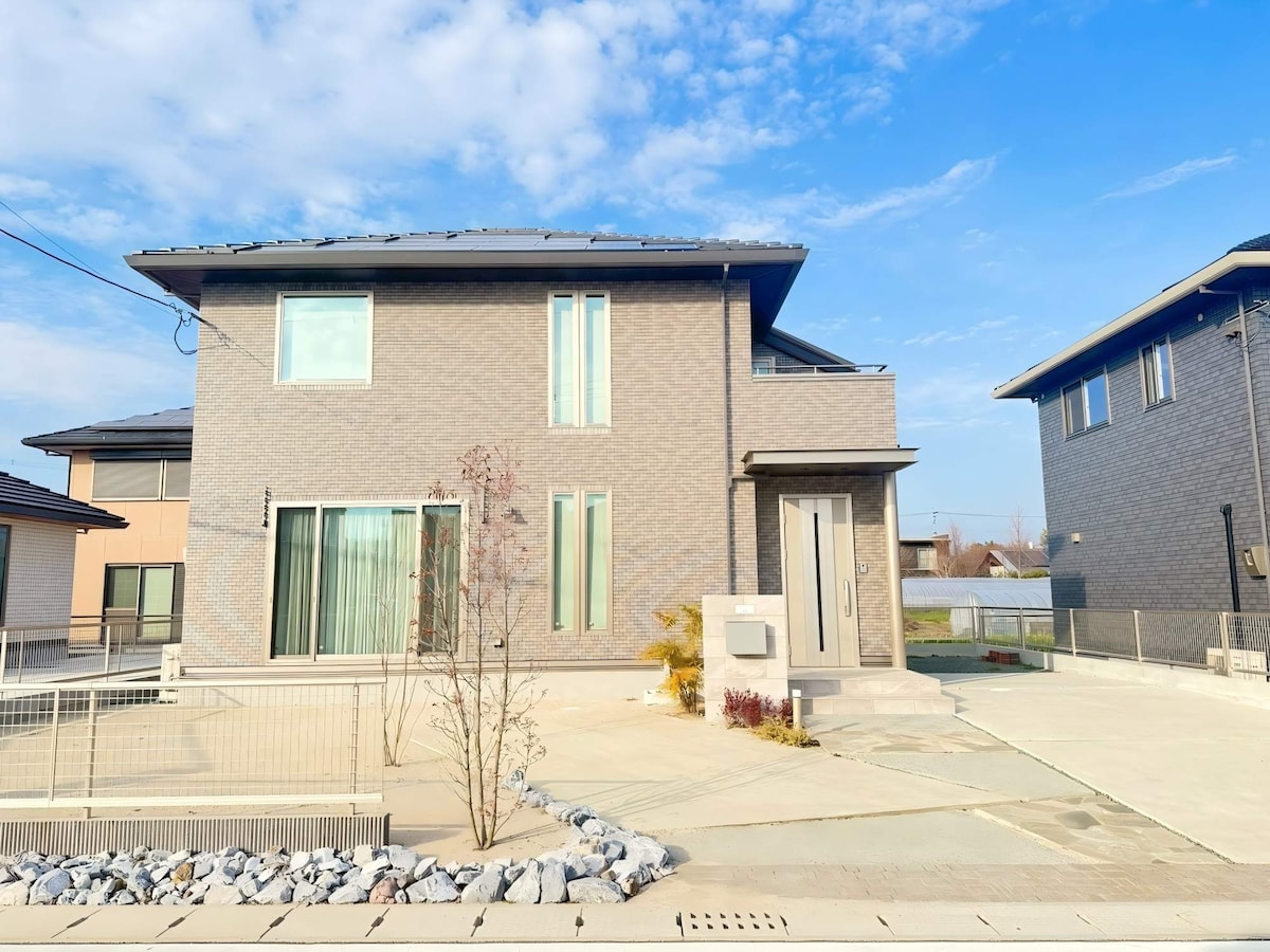 熊本・益城の「グランメッセ熊本」近くに、新築2階建ての高級貸切民泊が登場。 広々とした空間で、快適な滞在をお楽しみいただけます。 開放的なリビング・ダイニングと設備充実のキッチン(食器・調理器具・電子レンジ・炊飯器など)を備え、自炊も快適。 広々とした浴室には浴槽があり、旅の疲れをゆったりと癒していただけます。 寝室には高品質なベッドをご用意し、快適な睡眠環境を提供。 敷地内には複数台の駐車スペースがあり、お車でのアクセスにも便利です。 熊本空港まで車で約15分、インターナショナルスクールまで約10分。 グランメッセ熊本や展示会場にも近く、熊本市内の鶴屋百貨店へも車で約20分とアクセス良好です。 周辺には桜の森ショッピングモールをはじめ、寿司虎や焼肉店など飲食店も充実。 さらに、今年オープンした24時間営業のスーパー「TRIAL」へは徒歩約5分と、生活にも便利な立地です。 ご家族旅行、グループ滞在、ビジネス利用、長期滞在にも最適。 まるで新しい住まいのような感覚で、熊本で特別なひとときをお過ごしください。