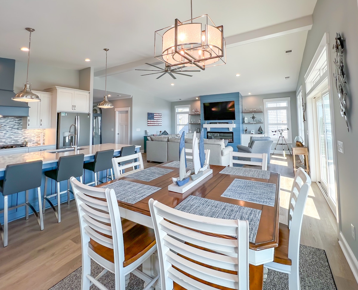 LUXURY at the beach! Book today for 2026! New PUTTING GREEN added! 2 minute direct walk to the sand! 5-Star rated Maize & Blue sleeps 10 with 4 bedrooms (3 with en-suite baths, + 1 more full bath). Experience sweeping beach views and sunsets from 2 HUGE decks overlooking the ocean .The open concept living, dining, and kitchen is perfect for hosting families and groups. Lots of parking and outdoor space to spread out and store your gear. Outdoor shower too! Linens provided & arrive to made beds.