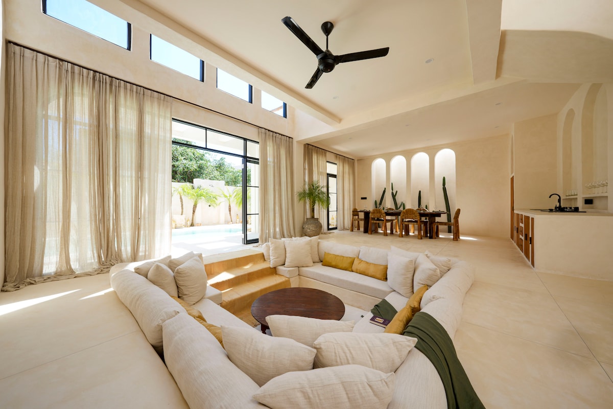 Casa Cherish berada di jantung kota Canggu. Vila - vila estetika ini berjarak beberapa menit dari kafe, resto, dan pantai terbaik di Canggu. Nikmati dan bersantai di vila 2 BR yang terinspirasi Mediterania yang indah ini yang akan menjadi pilihan sempurna untuk liburan Anda di Bali. Vila ini memiliki desain modern, cerah, bergaya mediterania, dekorasi interior bergaya dengan ruang tamu dalam ruangan yang dapat membantu Anda mengalahkan panas Bali. **Karena konstruksi di dekatnya, saat ini kami menawarkan tarif diskon untuk vila kami .**