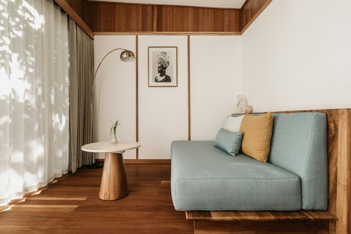 Nikmati kemewahan memiliki kamar pribadi. Kolam renang bersama dengan tempat tidur matahari tenggelam & pemandangan matahari terbenam terbaik, bersantai di Suite Anda sendiri dengan tempat tidur King size, kasur berkualitas tinggi, lemari pakaian, AC, WIFI & kulkas minibar. Kamar mandi dengan bak mandi dan pancuran hujan mewah. Layanan kebersihan harian. La Pan Nam adalah rumah Anda saat jauh dari rumah, gaya hidup Canggu dengan jarak dekat ke pantai dan begitu banyak Kafe, Restoran, pusat perbelanjaan, GYM, dll. Anda tidak akan ingin meninggalkan tempat yang menawan dan unik ini.