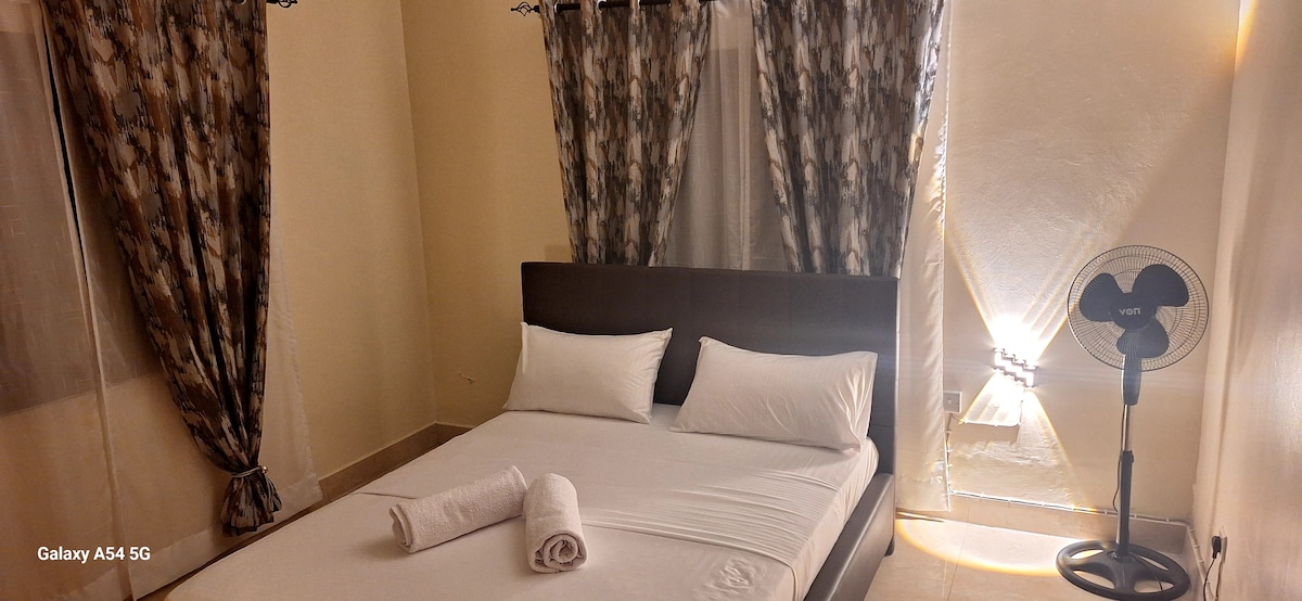 Apartemen 1 kamar tidur kami berlokasi di Shanzu di seberang Serena Beach Hotel &Pride Inn Paradise Hotel yang terkenal di dunia. Mudah 5 menit berjalan kaki ke pantai & kedua hotel. 20 menit dari pusat perbelanjaan utama Nyali city mall, 10 menit dari HALLER NATURE PARK yang terkenal di dunia, dikelola oleh HOSTELADAN, ideal untuk pelancong BISNIS/ LIBURAN. Terletak di komunitas yang AMAN, CHECK - IN MANDIRI, WIFI, kasur yang nyaman, dapur, ruang tamu yang lapang, kamar mandi pribadi,