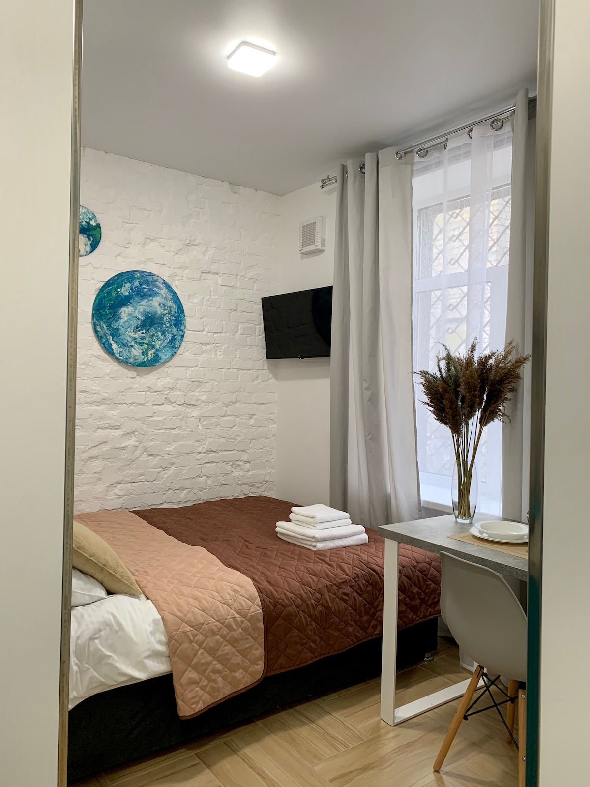Apartemen yang aman dan cerdas di dekat stasiun kereta api. Tanpa jendela