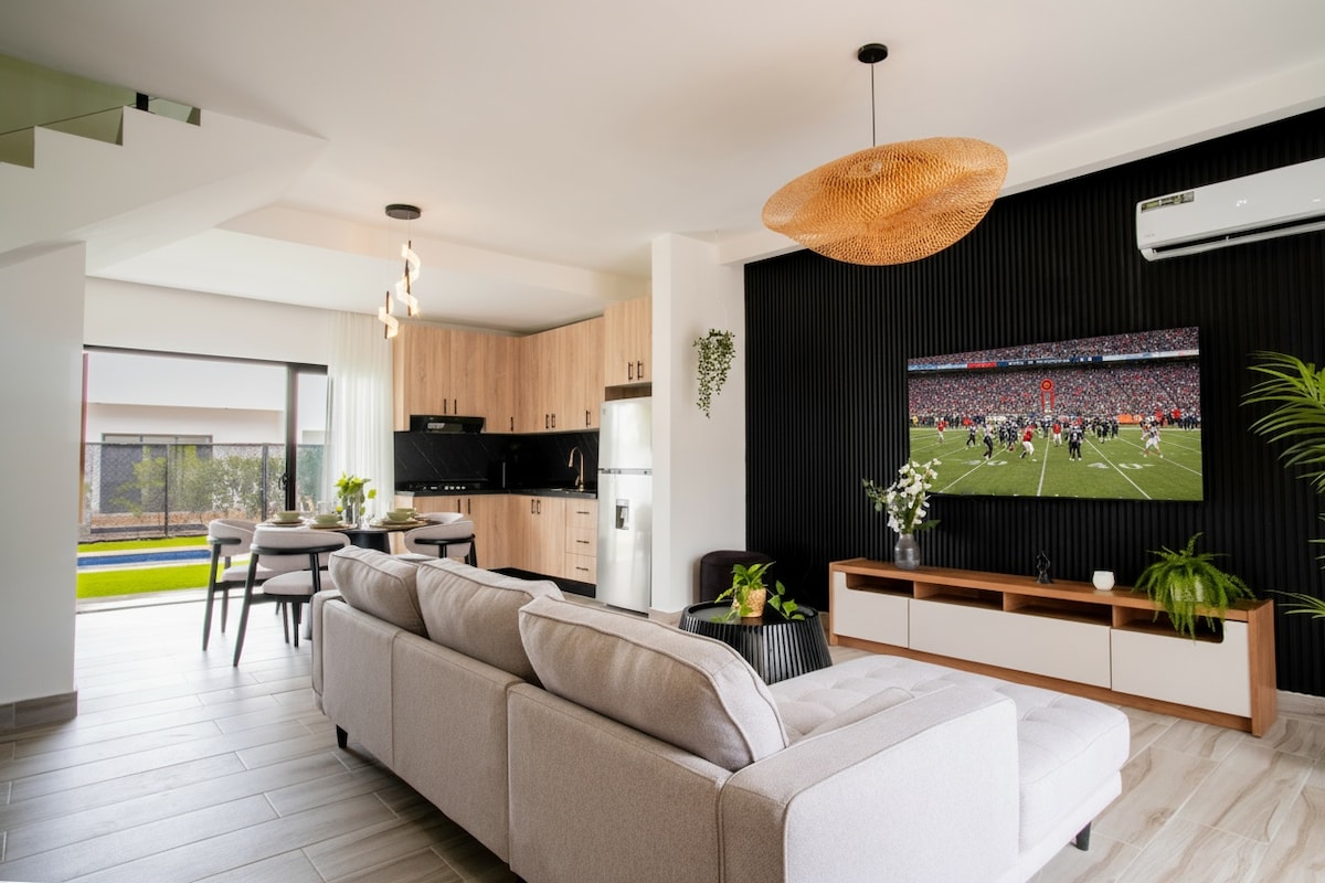 Villa modern dengan 1 suite dengan tempat tidur queen, lemari pakaian dan kamar mandi pribadi, 2 kamar tidur dengan tempat tidur penuh dan 2 kamar mandi lengkap. Ruang tamu besar, ruang makan, dapur lengkap dan taman dengan picuzzi pribadi. AC, WiFi, dan keamanan 24/7 di perumahan eksklusif. Sangat cocok untuk bersantai dengan penuh gaya di Punta Cana.