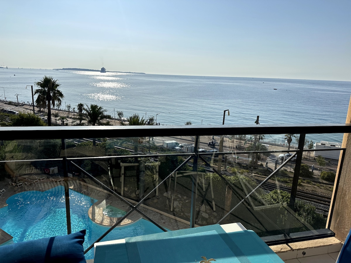Apartemen ber-AC di Cannes dengan pemandangan laut, kolam renang, fiber