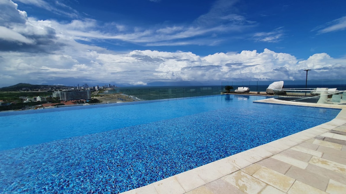 Apartemen mewah di Cartagena, yang terletak di kawasan eksklusif Los Morros. Gedung ini memiliki kolam renang infinity, jacuzzi, zona basah, dan area bermain anak-anak di atap. Apartemen ini memiliki akses langsung ke pantai. Tempat ini mencakup satu kamar tidur, ruang tamu dengan tempat tidur sofa double, dan dua kamar mandi dengan shower. Pembantu rumah kami datang setiap hari kecuali hari Minggu untuk membersihkan. Tamu juga bisa meminta sarapan, asalkan mereka menyediakan bahan makanan.