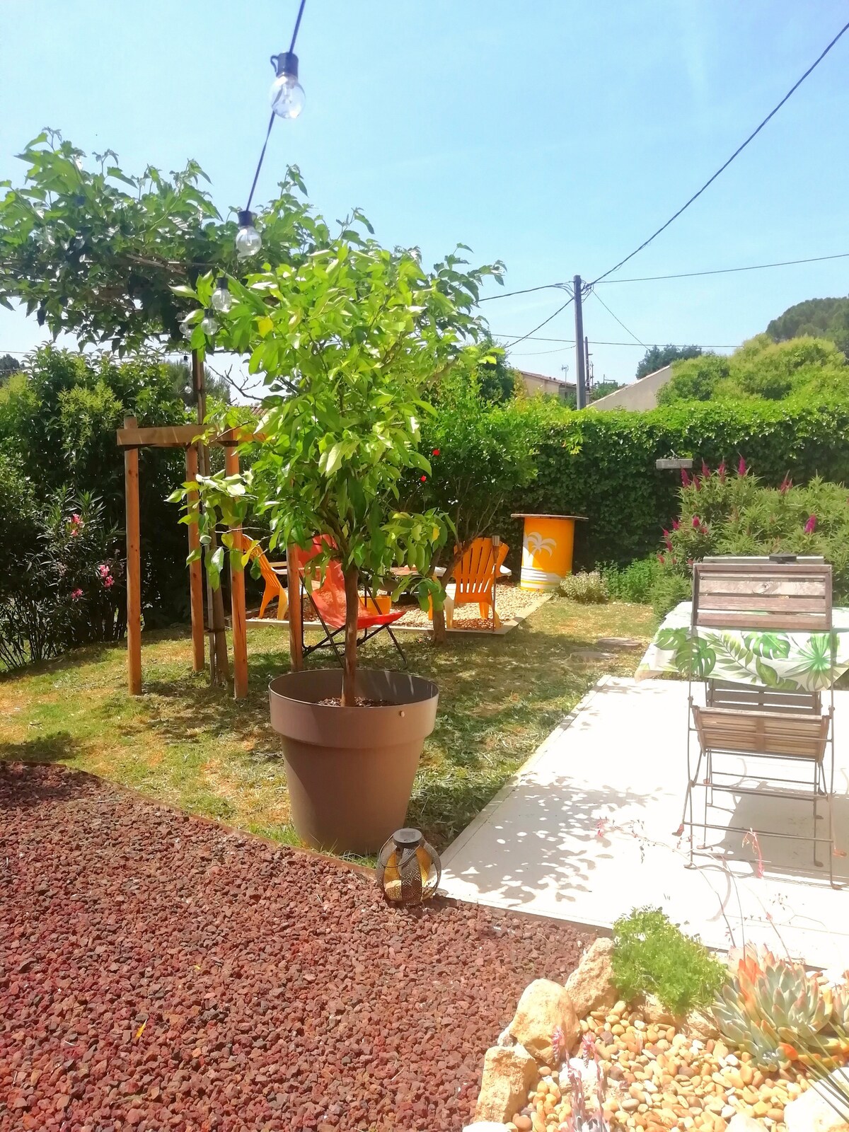 Rumah yang cerah dan ber-AC ini terletak di bagian belakang lahan berukuran 4000 m2 kami. Tempat ini dilengkapi dengan peralatan berkualitas untuk menjamin masa inap yang menyenangkan. La Provence seperti yang Anda bayangkan... taman pribadi tidak terabaikan, akses gratis ke kolam renang, lapangan petanque, barbekyu. Jarak berjalan kaki ke pusat desa Provencal kami yang menawan. Tempat awal yang ideal untuk menemukan Aix-en-Provence, Marseille, Cassis dan calanques atau hiking di Sainte-Victoire.