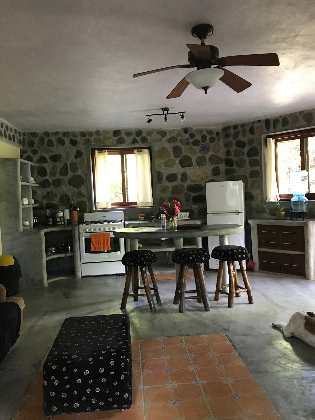 Terletak jauh di hutan rimbun Rio Cangrejral dengan pemandangan pegunungan yang indah di taman indah seluas 1,7 hektar, rumah kami memiliki apartemen 1 kamar tidur di lantai bawah dan studio di lantai atas, kedua tempat memiliki air panas dan dingin, dapur lengkap, lokasi yang sangat pribadi dan aman dalam jarak 5 menit berjalan kaki ke Omega Lodge dan Adventure Tours, dengan bar, restoran, wifi, dan segala macam petualangan luar ruangan, silakan pesan lebih awal.