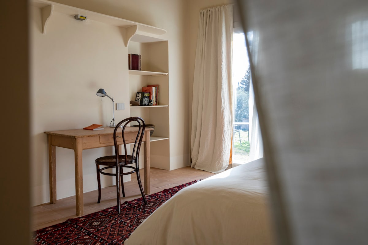 Apartemen independen dan benar - benar tersedia untuk tamu kami. Apartemen satu kamar tidur yang nyaman, dalam kesederhanaan konteks keluarga kami, dengan taman besar yang tersedia, ditemani dua anjing kami. Apartemen ini terletak di lingkungan pemukiman pinggiran kota, sangat tenang dan dikelilingi oleh kehijauan pedesaan Rimini. Berjalan kaki sebentar dari Santarcangelo di Romagna (2 -3 km), Rimini centro (6 -7 km), Rimini mare (sekitar 8 km), Rimini Fiera (sekitar 5 km).