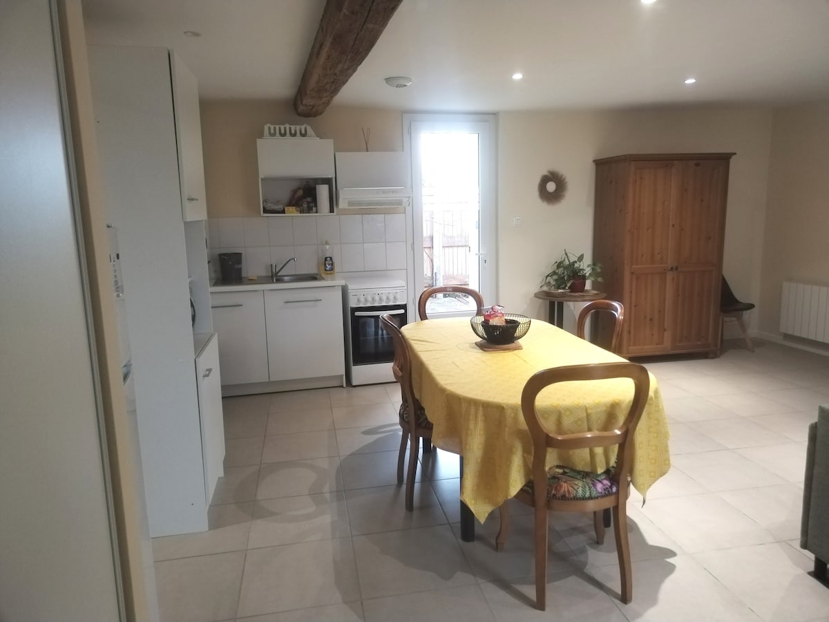 Studio menawan seluas 22 m² baru, nyaman, fungsional/cerah menghadap selatan. Alamat setelah pemesanan. Dilarang merokok Rumah terpisah, pintu masuk independen & kotak berkunci untuk check - in mandiri. Ketenangan pedesaan Pont St Martin & keaktifan pusat Nantes (15 menit naik mobil). 10 menit dari Bandara & Kastil Pigossière. Bagi pecinta laut, pantai terdekat (45 menit naik mobil) Pornic (Loire Atlantique) &St Jean de Mont (Vendee) & 1 jam dari Puy du Fou.