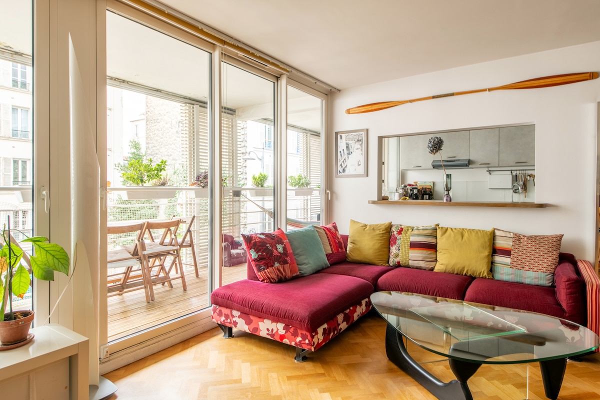Flat yang tenang & besar dengan teras di dekat Montmartre