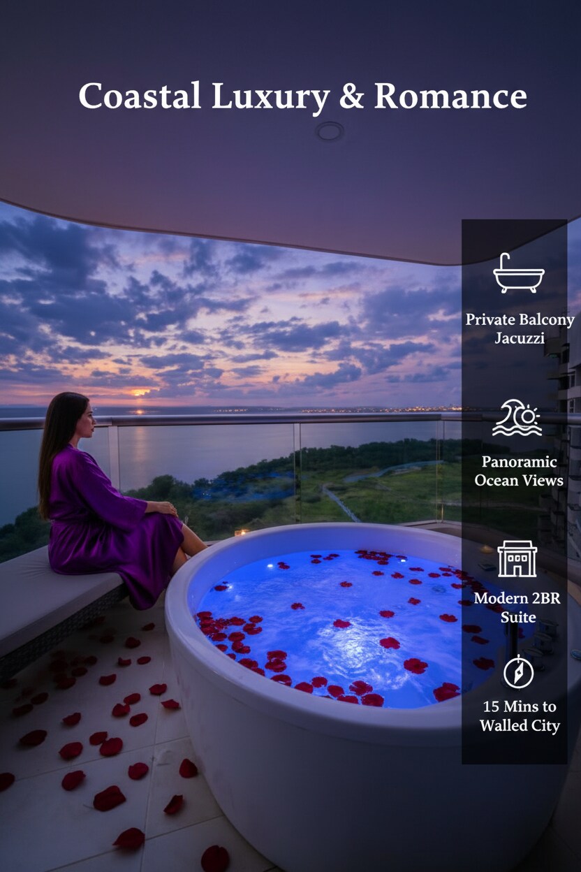 Lux Beachfront 2BR dengan Jacuzzi 15 menit ke Walled City