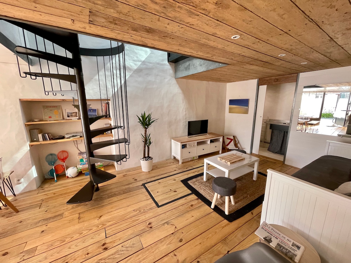 Di antara dua pantai – Temukan studio yang nyaman ini, yang telah direnovasi total dan berfasilitas lengkap, di tempat tinggal yang aman dengan kolam renang, 180 meter dari dua pantai terindah di Île de Ré. Dekat dengan semua fasilitas, 5 menit jalan kaki ke pusat desa. Jalur sepeda. Jendela Velux otomatis dengan daun jendela; Seprai dan handuk disediakan. Tempat tidurnya dibuat saat kedatangan. STUDIO INI TIDAK COCOK UNTUK ANAK-ANAK KARENA ADA TANGGA JEPANG