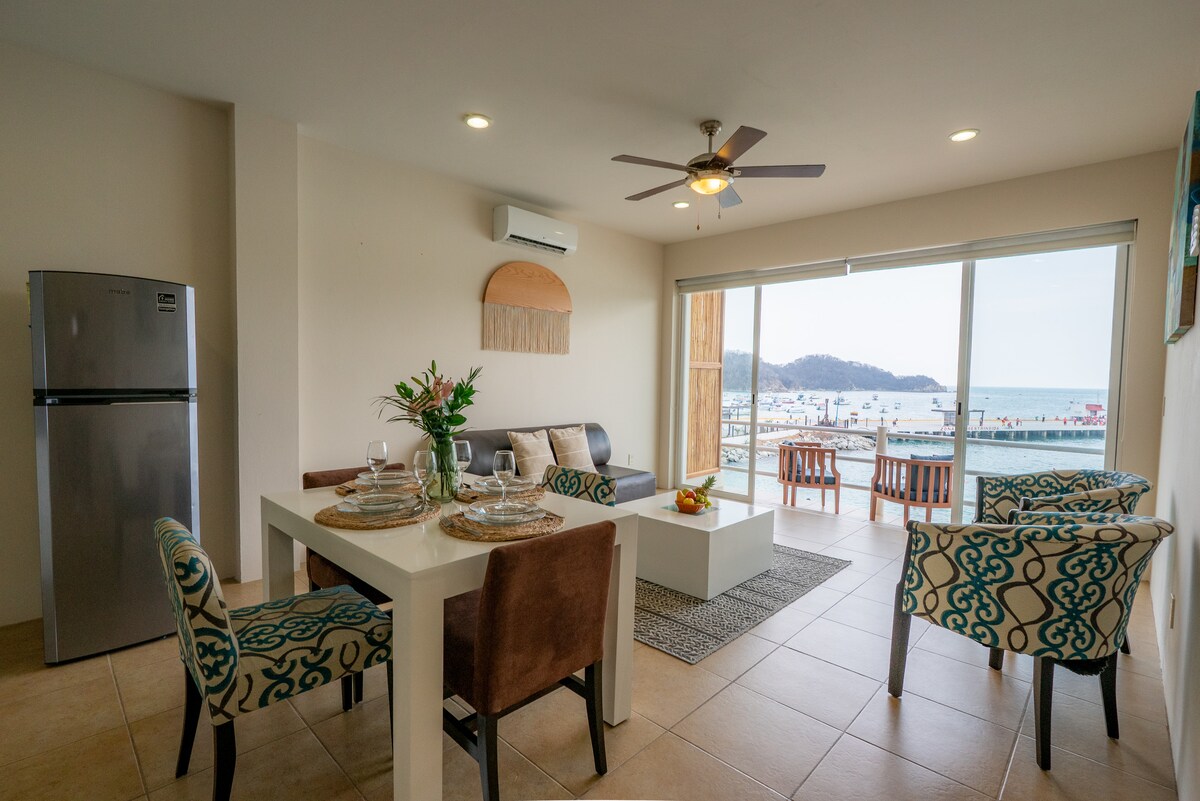 Selamat datang di Condo Costta, kondominium baru dan modern dengan kolam renang atap, pusat kebugaran, lift, dan keamanan. Terletak 5 menit berjalan kaki dari Playa Santa Cruz, marina, restoran, dan toko, dan 15 menit dari Playa Chahué dan pusat La Crucecita. Nikmati pemandangan laut yang menakjubkan, area pemanggang, dan matahari terbenam yang spektakuler. Dilengkapi dengan tempat tidur king, dapur lengkap, mesin cuci, pengering, dan fasilitas pantai. Ideal untuk menginap yang nyaman dan santai di tepi laut.
