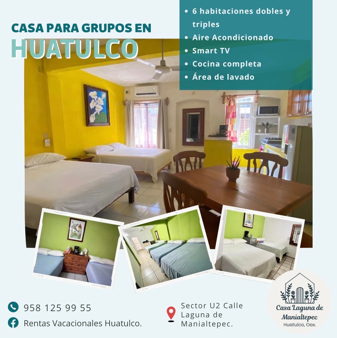 Rumah harmonis & bergaya. Dapur yang sangat lengkap, kamar tidur King & Queen. Internet berkecepatan tinggi, TV plasma 50”a/c di seluruh rumah. Anda akan menemukan supermarket dan pantai dalam waktu 10 menit berjalan kaki. Semua ini ditempatkan di salah satu sektor terbaik dan tenang di Huatulco. Anda dan keluarga akan merasakan salah satu tempat liburan di pantai Huatulco yang indah.