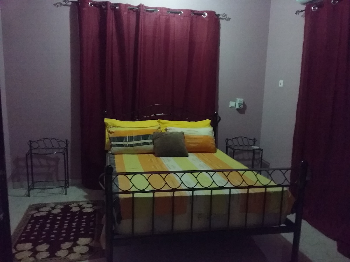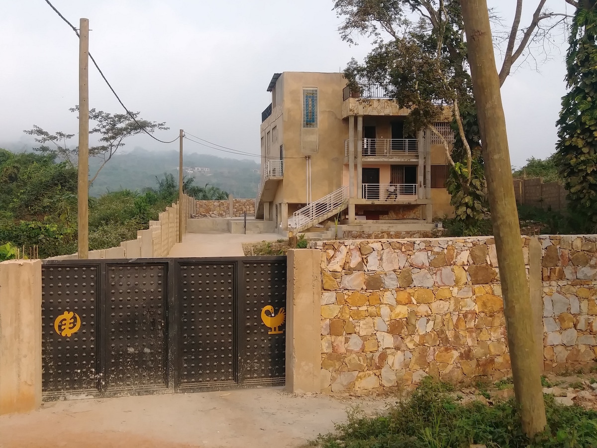 Flat dua kamar tidur yang indah dan luas di East Legon yang mewah. Dilengkapi dengan Balkon dengan pemandangan indah daerah sekitarnya. Jarak ke Accra Mall dan 5 menit berkendara ke bandara. Kami menawarkan bahan - bahan gratis untuk sarapan kepada tamu jangka pendek kami dan menyimpan kulkas dan stok dapur dengan minyak zaitun, telur, mentega, mayo, dan saus tomat.