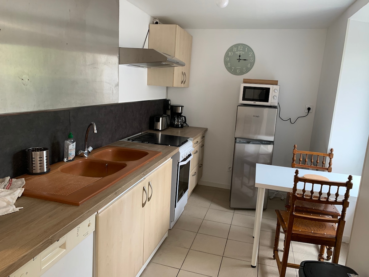 Studio di desa 15 menit dari Puy du Fou. Hunian ini terdiri dari: - pintu masuk independen - area dapur (kompor memasak, microwave, pemanggang roti, pembuat kopi Senseo, ketel, kulkas) - area kamar tidur dengan tempat tidur 140 x 190 - kamar mandi+ toilet - area luar ruangan dengan furnitur taman + parkir pribadi Seprai dan handuk disediakan Check - in mandiri dimungkinkan dengan kotak penyimpanan