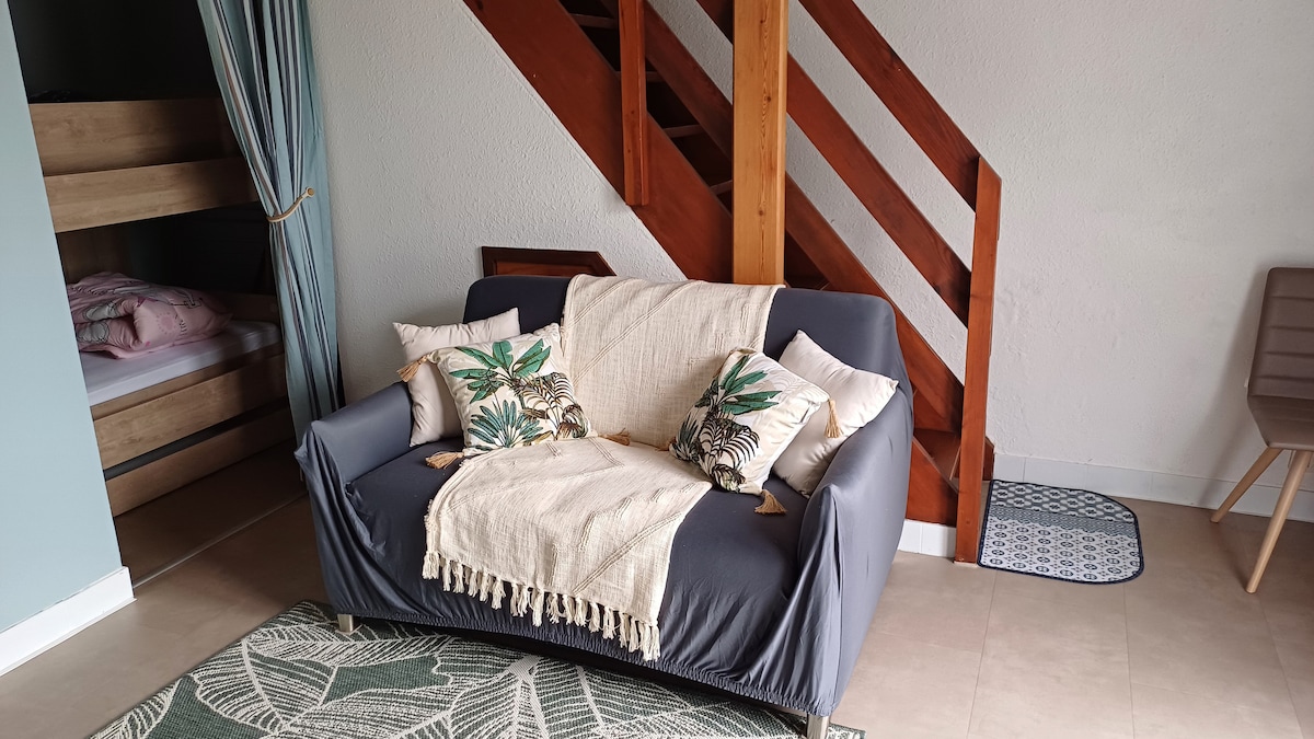 Akomodasi independen yang bersebelahan dengan rumah kami dengan pintu masuk pribadi. Lokasi istimewa 100 m dari pantai La Faute sur Mer yang sangat bagus. Apartemen T2 seluas 22 m2 dengan dapur kecil, sofa, dan TV; 1 kamar tidur dengan tempat tidur double pada tahun 160 X 190, dengan kemungkinan memisahkan tempat tidur (sesuai permintaan); kamar mandi dengan pancuran, wastafel, dan toilet. Teras dengan meja taman dan kursi. Seprai dan handuk disediakan. Termasuk wifi. Pada bulan Juli dan Agustus, minimum 7 malam dari Sabtu hingga Sabtu.