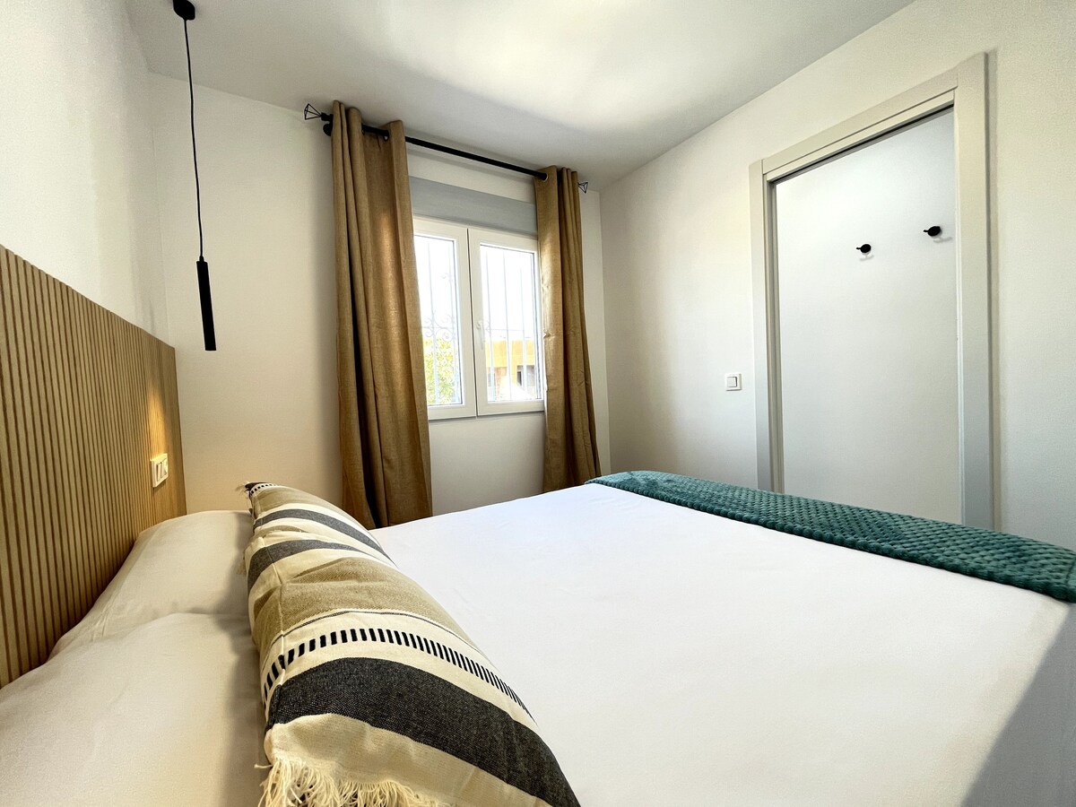 Apartamento VIP recién reformado y amueblado a 700m del mar con un dormitorio y sofá-cama. Todo lo necesario para una pareja. Con smartTv en comedor y habitación de 55”. 1 baño totalmente equipado y con todas las comodidades (secador de mano, productos de aseo)... Wifi por todo el espacio. Salón comedor con zona de descanso muy luminoso , con preciosas vistas . Cocina completamente equipada, servicio de café y té, lavadora-secadora, tostadora, vitrocerámica, horno microondas, nevera.