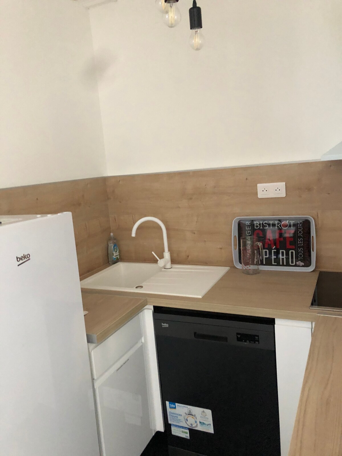 pintu masuk 24/24 7/7 ada perumahan kotak kunci seluas 60m² baru dengan dapur yang dilengkapi dan dilengkapi (kulkas, pelat induksi, oven, microwave, pemanggang roti, pembuat kopi. Di ruang tamu Anda memiliki 2 sofa dan layar datar. Anda memiliki dua kamar tidur Seprai rumah yang disediakan serta kopi, teh untuk sarapan. Gedung ini berlokasi di daerah yang tenang Anda berada di pusat kota Cherbourg.