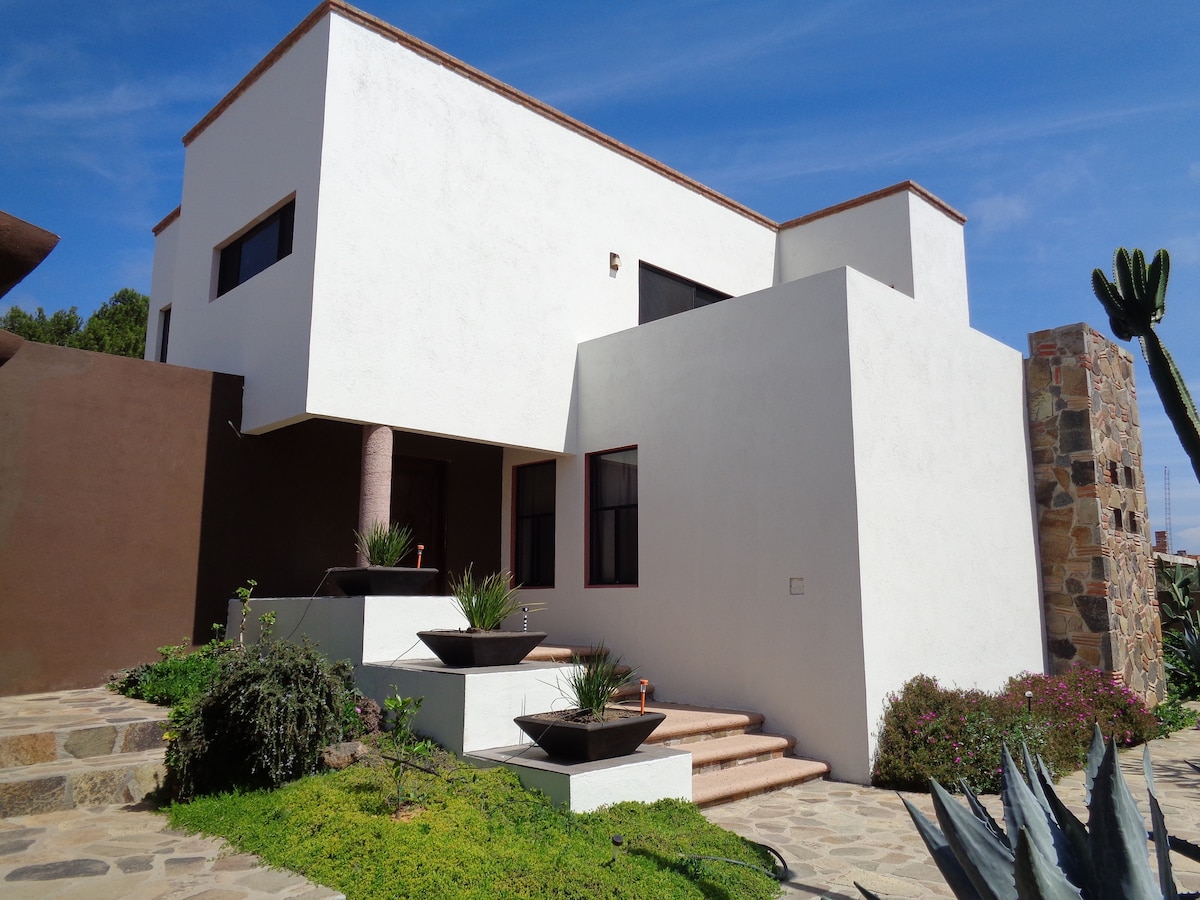 Nikmati pemandangan kebun anggur, pegunungan, & lembah sambil menyaksikan matahari terbit di atrium & matahari terbenam di teras. Rumah ini dimaksudkan untuk menghibur dengan ruang dalam & luar ruangan untuk maksimum 6 orang dengan nyaman. Terletak di pusat Valle dengan akses mudah dari Route 3. Kami berada dalam jarak 5 -15 menit dari beberapa kilang anggur dan restoran berbintang Michelin yang menakjubkan dan 50 restoran terbaik di Amerika Latin. Museum anggur berjarak 5 menit. Arena Valle de Guadalupe berjarak 20 menit.