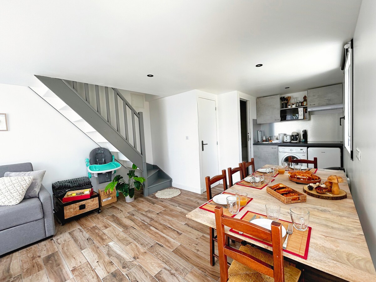 Datang dan bersantai di rumah ini di tempat yang sangat menyenangkan. Spa renang besar yang dipanaskan hingga 35/37 derajat akan membuat Anda melupakan kehidupan sehari - hari Anda. Anda akan tergoda oleh fasilitas: - Kamar tidur: tempat tidur 2 meter dengan memori bentuk dan mata air, pencahayaan intim. - Kamar mandi: Pancuran, wastafel rias ganda, meja rias, toilet (toilet independen lainnya di rumah). - Dapur lengkap - Ruang tamu: piano, meja foosball, permainan papan, TV. Speaker Alexa Connected.