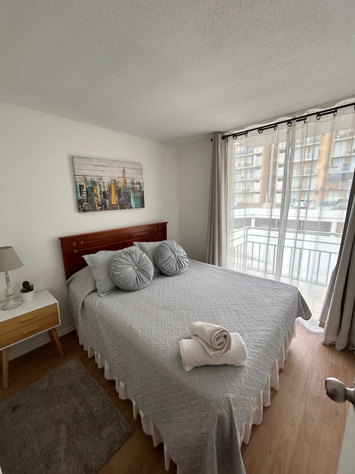 Acogedor departamento, con excelente ubicación a 25 min. del aeropuerto. Vista a la ciudad, decoración moderna, con balcón , cocina equipada, walk in closet, estacionamiento, seguridad 24 hrs., 3 piscinas, lavandería. Acceso directo a Boulevar de Servicios, farmacia ahumada, Restaurantes y supermercado lider express. Al alcance de todo, ubicado a 1 cuadra de Terminal de Buses, Hospital Regional. A minutos de la Municipalidad - Muelle Histórico - Playas - Mall y centro de la ciudad.