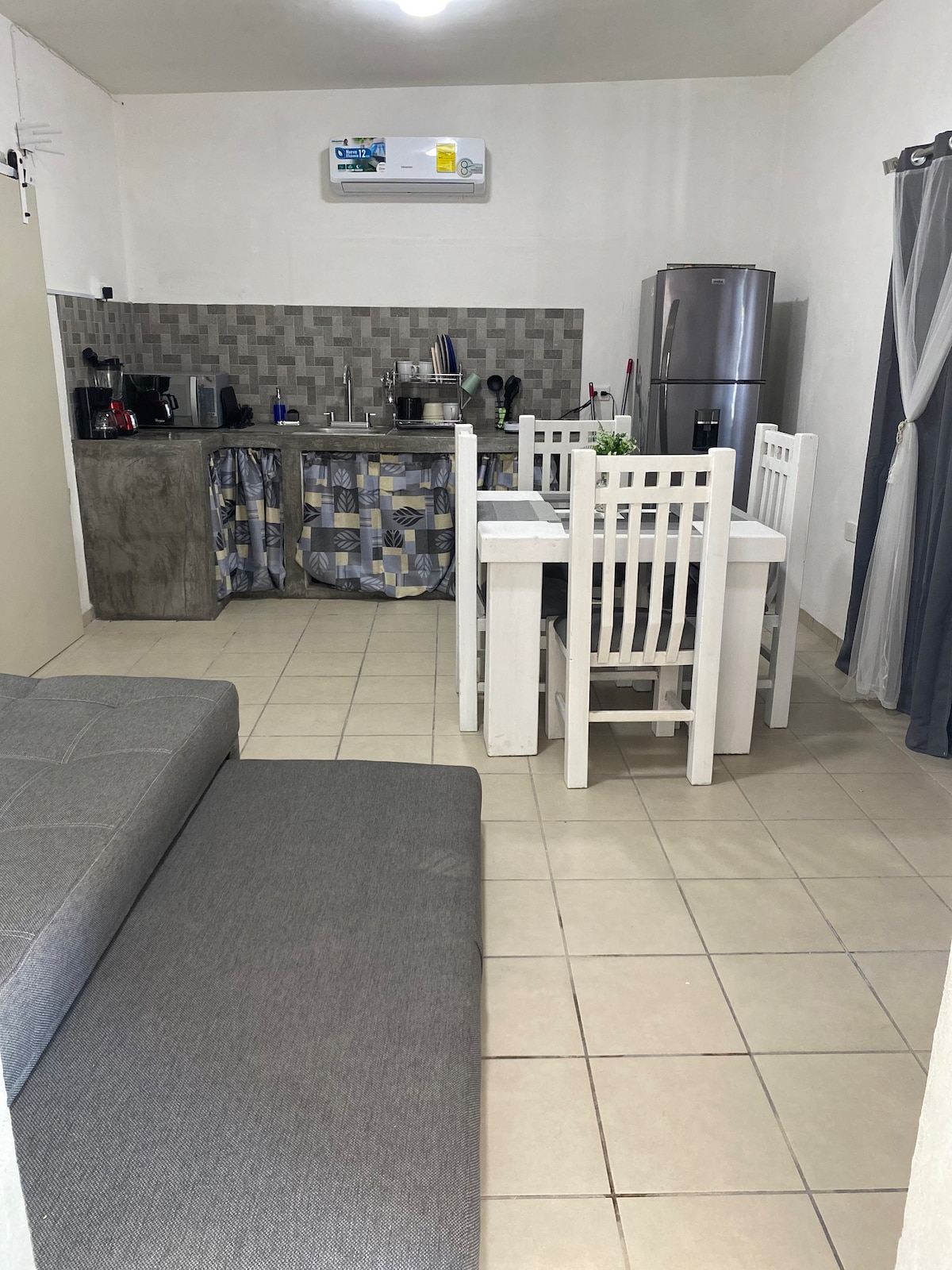 Apartemen ini baru, modern, dan nyaman. Memiliki akses independen. Lokasinya berjarak 4 km dari "El Malecón" (pusat kota), di lingkungan yang sangat tenang dan aman. Tempat ini memiliki satu tempat tidur lengkap, satu tempat tidur sofa, dapur kecil yang mencakup kulkas mini dan kompor listrik, meja untuk empat orang, ruang untuk menyimpan pakaian, dan kamar mandi lengkap. Memiliki AC dan sinyal wifi yang bagus. Ada patio dengan tempat tidur gantung yang bisa digunakan oleh tamu, dan area parkir. Tersedia mesin cuci untuk tamu.