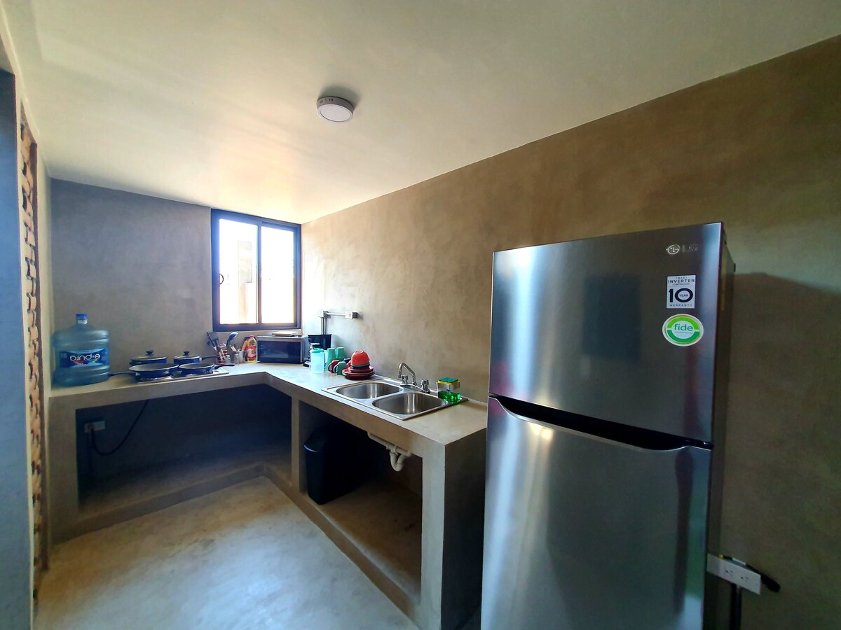 Acogedor departamento nou hanya 2 menit dari Malecón. Sangat cocok untuk bersantai atau menjelajahi La Paz. Tempat ini memiliki AC, Wi - Fi cepat, TV, dapur lengkap, dan perlengkapan pantai. 5 menit berjalan kaki dari restoran, museum, dan supermarket. Pantai berjarak 15 menit. Keluarlah dan nikmati pemandangan Laut Cortez! Sebagai tuan rumah lokal, saya siap membantu apa pun yang Anda butuhkan.