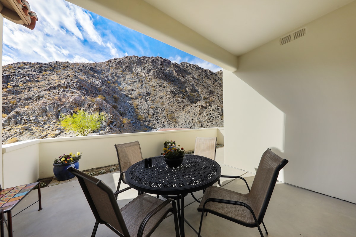 Kondominium La Quinta aman COVID dengan tarif khusus! Manfaatkan Kondominium yang jauh dari rumah. Kondominium lantai atas yang baru didekorasi ini memiliki 3 kamar tidur besar dan 3 kamar mandi. Setiap kamar tamu menampilkan seprai hotel putih renyah, dan alternatif down comforter yang lembut. Kamar tidur King dan ruang tamu masing - masing dilengkapi TV pintar dan perapian. Ada balkon besar untuk Anda menikmati pemandangan Santa Rosa Mountains yang indah saat Anda bersantai & menikmati makanan yang disiapkan di panggangan luar ruangan.