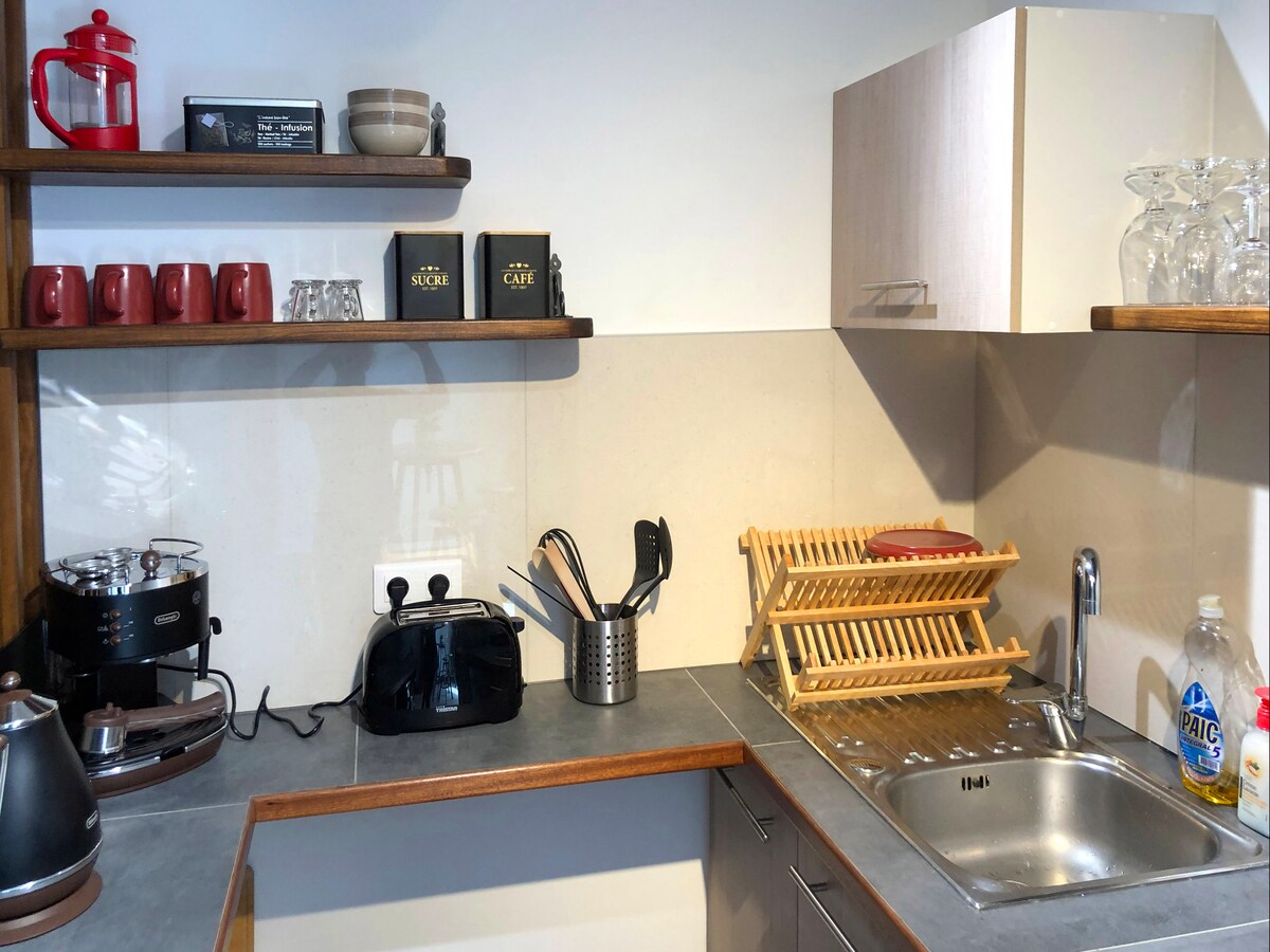 Selamat datang di studio kami seluas 30m2, yang terletak di lantai taman, menawarkan suasana yang damai dan santai untuk masa inap Anda. Sangat cocok untuk pasangan, wisatawan solo atau pelawat bisnis di mana saja. Tempat ini terang dan ditata dengan baik,akses ke taman kecil untuk bersantai sepanjang hari menikmati ketenangan. Kami senang menerima Anda dan menunjukkan semua yang ditawarkan kerikil kami. Jangan sungkan untuk memberi tahu kami jika ada pertanyaan atau permintaan khusus.