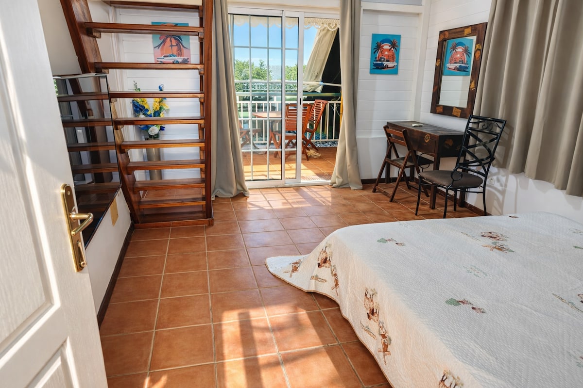 Rumah Creole berwarna-warni dengan pemandangan laut 2 kamar tidur/4 orang