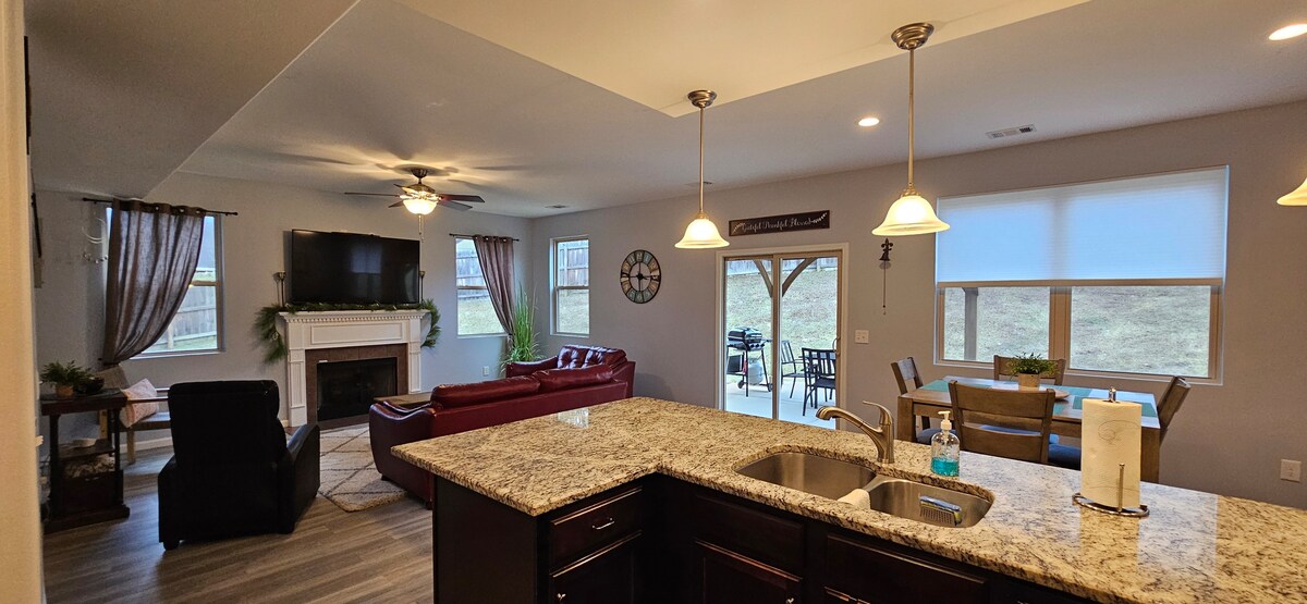 Rumah modern yang indah di lingkungan yang tenang namun sangat dekat dengan Interstate 24, pusat perbelanjaan, bioskop, restoran, dan supermarket. Terletak 25 menit dari pusat kota Nashville, 20 menit dari Murfreesboro, dan 20 menit dari bandara Nashville. Dapur dan ruang makan terbuka, ruang keluarga yang luas dengan smart TV 65 inci, dan ruang cuci dengan mesin cuci/pengering besar Brand New. Loteng dengan daybed, smart TV, kursi, dan meja foosball. Teras tertutup luar dengan pagar privasi.